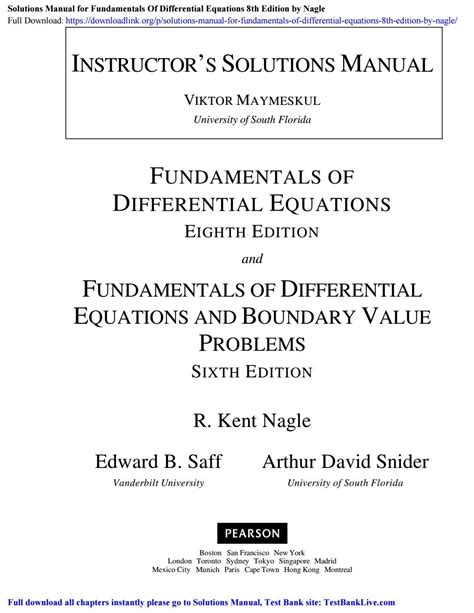Read Online Fundamentals Of Differential Equations 8th Edition Solutions Manual Kindle Editon
